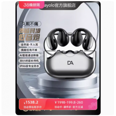 首页 > > 耳机耳麦 > 蓝牙耳机2024新款无线不入耳骨传导夹耳式高音质运动耳机跑步专用