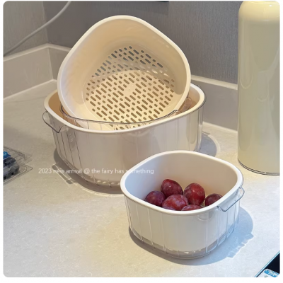 双层洗菜盆沥水篮厨房家用客厅茶几塑料水果果盘篮子盆子淘菜盆篮